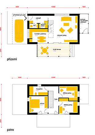 Rodinné domy splňují požadavky moderního bydlení: rozdělení interiéru na obývací a klidovou část, prostorné otevření kuchyňského koutu, maximum prostoru, dostatečné prosvětlení jednotlivých místností, parkovací stání před domem pro dva osobní automobily.