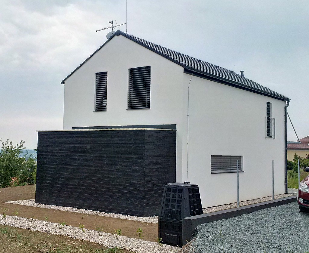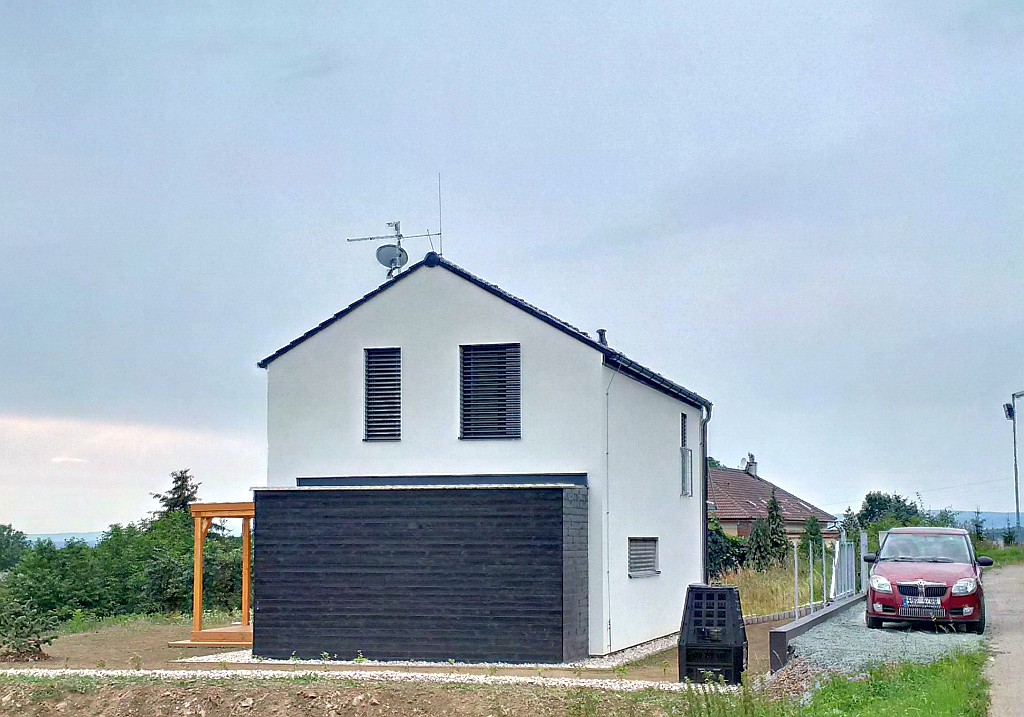 Dům je z vnějšku kompletně dokončený, uvnitř si jej klienti mohou dodělat svépomocí dle vlastních představ.